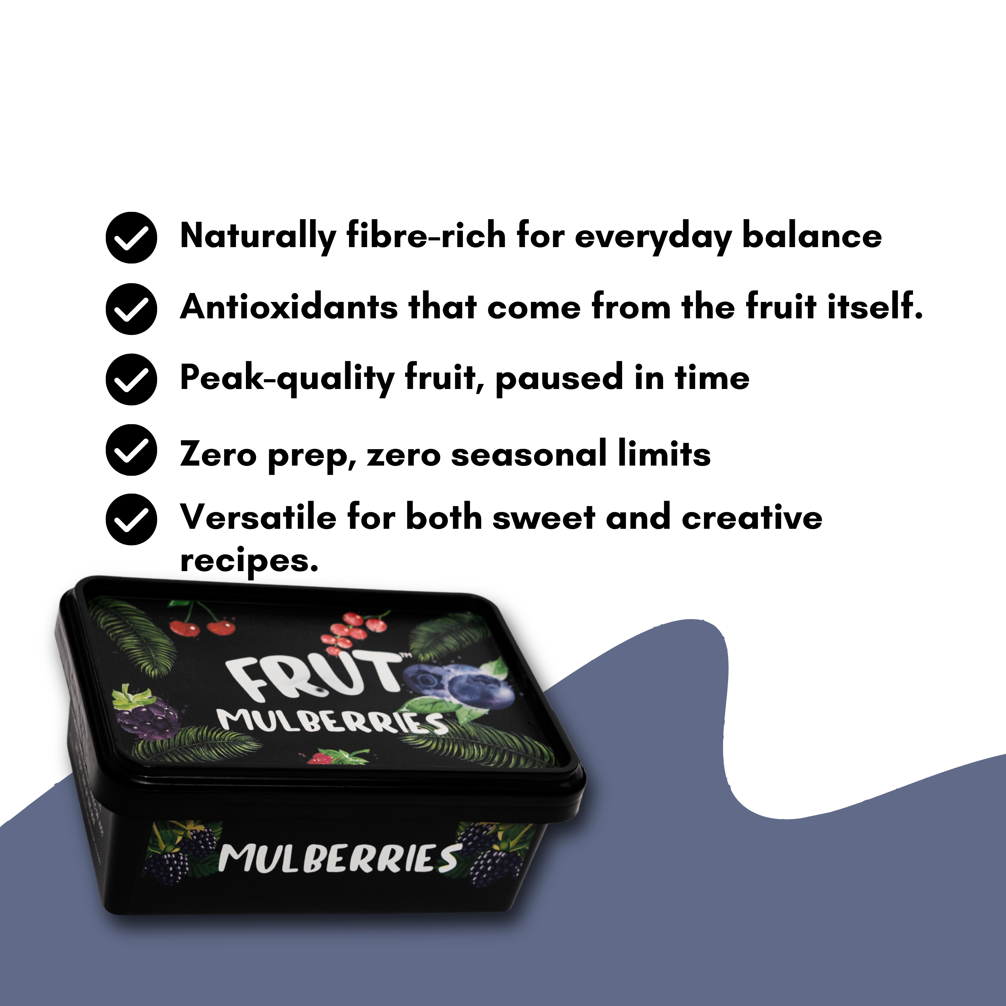 Each FRUT mulberry is packed with Vitamin C, iron, fibre, and antioxidants that help immunity, recovery, and overall health.